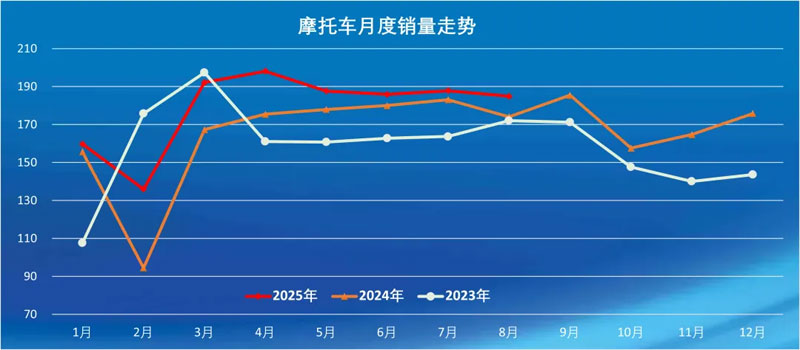 8月,我國摩托車行業產量環比微增、銷量環比小幅回落,產銷量同比小幅增長;其中,外貿出口持續保持良好增長勢頭,為當月市場穩定運行提供了有力支撐。從1-8月累計情況來看,行業運行韌性持續顯現,休閑娛樂大排量摩托車延續增長勢頭,成為拉動消費的重要增長點;同時,外貿出口繼續保持增長,推動行業整體穩定發展。